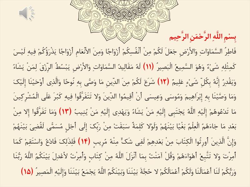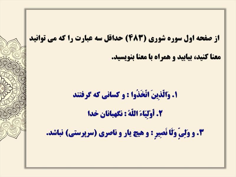 دانلود پاورپوینت درس اول آموزش قرآن پایه نهم - سوره شوری و زخرف و کتاب بی مانند